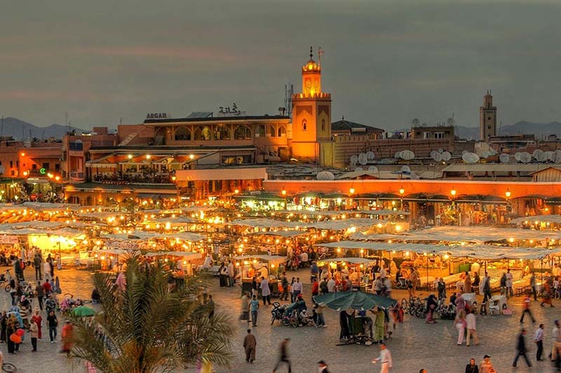 Nuestro guía te explicará el significado de todas estas actividades mientras escuchas las voces de curanderos y adivinos que intentan atraer y convencer a su audiencia. Veremos a los bailarines locales, los acróbatas, los encantadores de serpientes y conoceremos cada uno de estos ancestrales espectáculos.