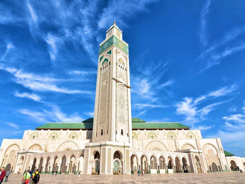 Llegada al aeropuerto de Casablanca. Recepción a cargo de nuestro personal en español. Visita de la mezquita Hassan II la más famosa del reino de Marruecos. Seguidamente, pondremos rumbo hacia Rabat para visitar los monumentos más conocidos de la ciudad. La visita comienza por los recintos donde se encuentra el Palacio Real, “Dar el Makhzen”. Posteriormente se visitará la Kasbah de los Oudaias. Preciosa vista panorámica del estuario del Bou Regreg desde la plataforma del antiguo faro. A continuación nos dirigiremos al Mausoleo de Mohamed V. Después se realizará el traslado al hotel. Alojamiento y desayuno en un riad con encanto.