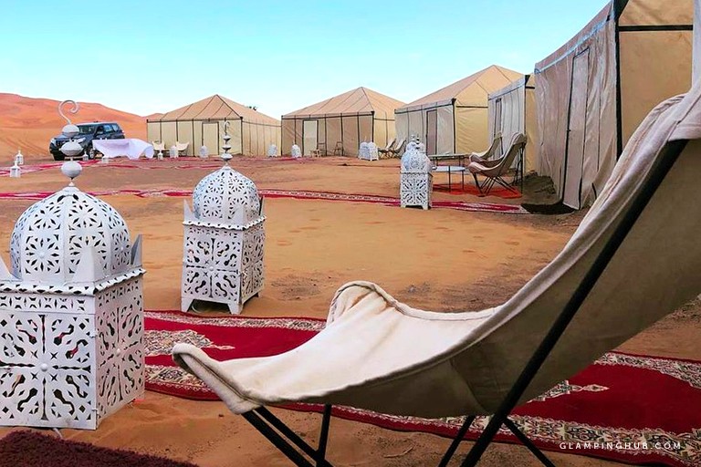 Desayuno y salida hacia el pueblo de Khamlia, pueblo originario de Mali, donde relajarnos con un té mientras disfrutamos de un pequeño concierto de música gnawa. Sus habitantes son descendientes de antiguos esclavos de las caravanas que venían del sur de África y que se establecieron en la zona e hicieron de la música gnawa un arte y su modo de vida. Si realizáis la ruta en 4×4, saldremos en 4×4 para rodear las dunas del Erg Chebbi, extensión de desierto de arena donde se encuentra la Gran Duna de Marruecos, de más de 250 metros de altitud, conectando por pista con parte de la ruta seguida por el antiguo París-Dakar, con las montañas que limitan con Argelia de fondo. Parada en el oasis de Tissardmin y continuamos hasta un asentamiento nómada donde conoceremos algunos secretos de su vida y costumbres. Posterior parada en un punto panorámico donde poder contemplar el Erg Chebbi en conjunto. A continuación nos dirigiremos a Rissani, donde visitaremos su interesante zoco africano, el más grande de la región y donde acuden los nómadas y habitantes de los pueblos de alrededor para vender sus productos y comprar los enseres que necesitan. Regreso al hotel y por la tarde nos esperan los dromedarios para adentraremos en el desierto mientras se pone el sol hasta llegar al campamento de jaimas en mitad del desierto de altas dunas, donde pasaremos la noche. Cena y noche en una jaima bajo las estrellas del desierto.