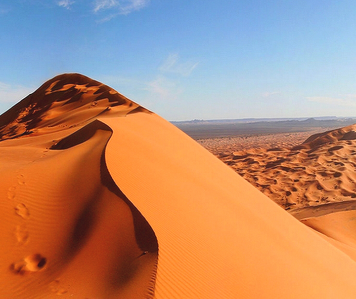 Despierta temprano en la mañana para disfrutar de la salida del sol en la parte superior de la duna en el desierto del Sahara y luego tomar el desayuno . Después de estos bellos momentos , usted montar su camello de vuelta al hotel donde puede darse una ducha . Tendrá un recorrido por las dunas en 4×4 que le permite visitar las rocas volcánicas negras de fósiles , visitar a una familia nómada que vive en la tienda , visita a KHAMLIA pueblo y de entretenimiento de su música espiritual de Gnawa , y visitar el lago Dayte Sarji que las formas en primavera que atraen flamencos rosados y la vida silvestre . Entonces usted tendrá un descanso para el almuerzo en Merzouga o Hassi Labied . Después del almuerzo , verá el sistema de canales de riego y tienen un paseo por el oasis ubicado a los pies de las dunas. Continuar hasta su hotel para ducha y relajarse. Cena y alojamiento en un albergue .